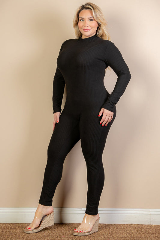 Plus Size Ribbed Mock Neck Long Sleeve Casual Jumpsuit (CAPELLA)