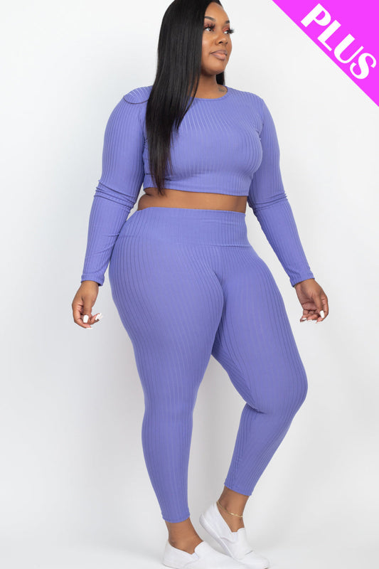 Plus Size Ribbed Long Sleeve Crop Top & Leggings Set (CAPELLA)