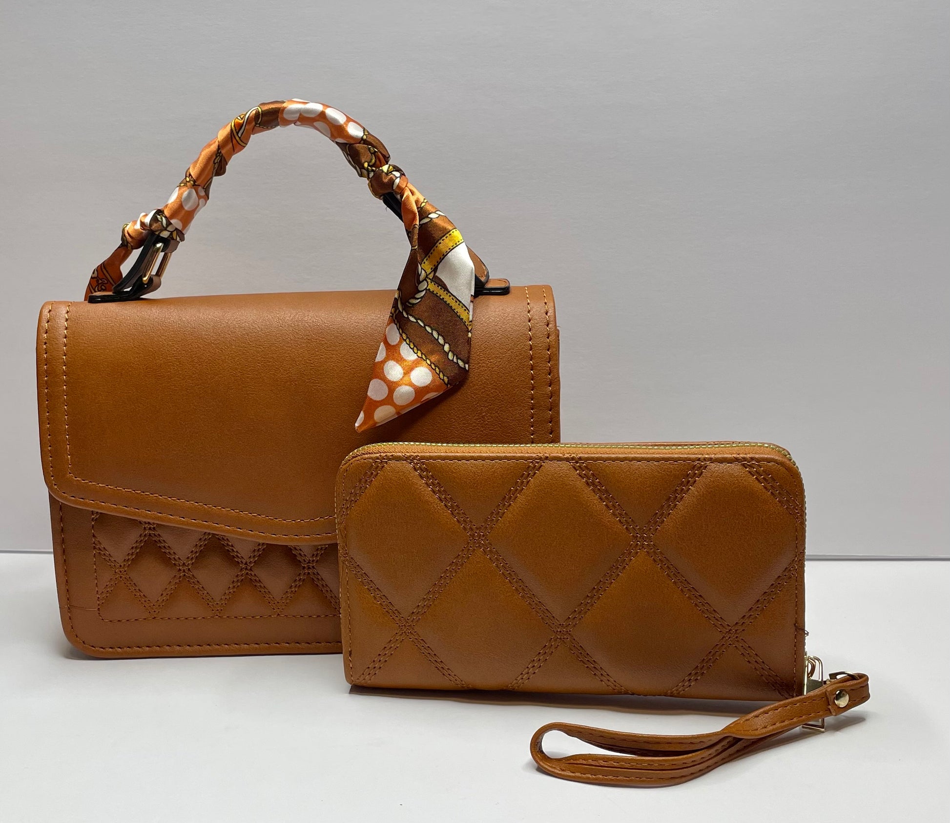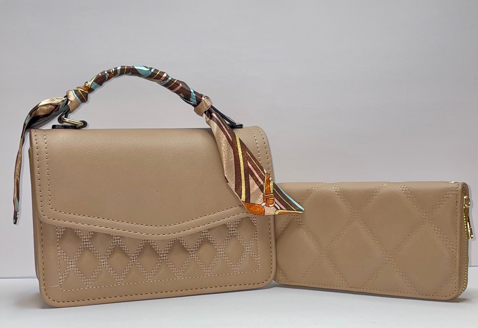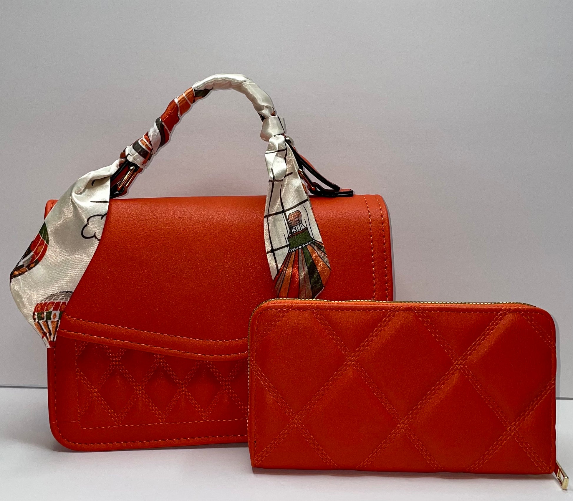 Our Fable handbag is Finished with gold-toned hardware for a touch of luxury. The silk-twilly scarf wrapped around the handle adds a chic and playful accent.