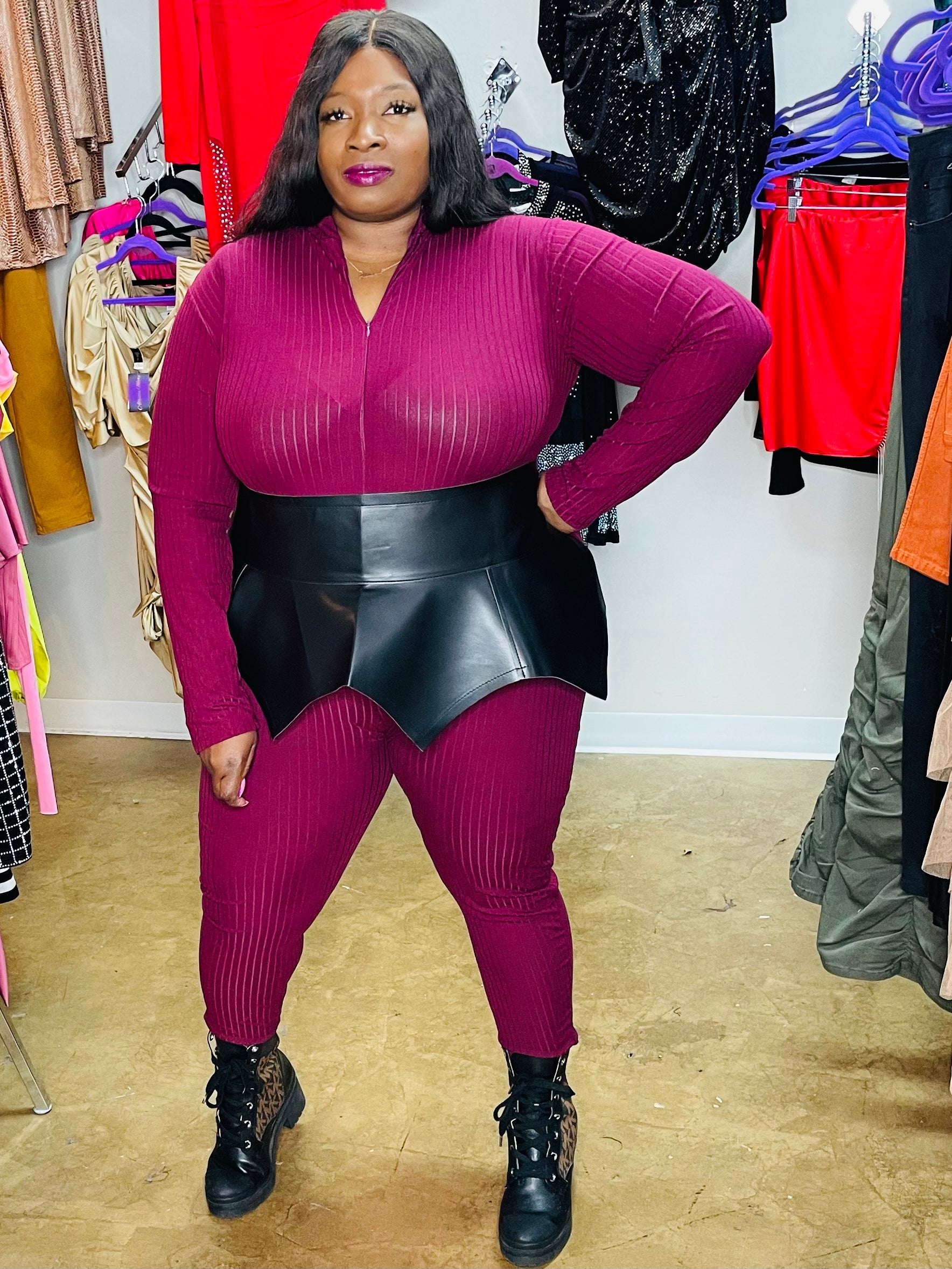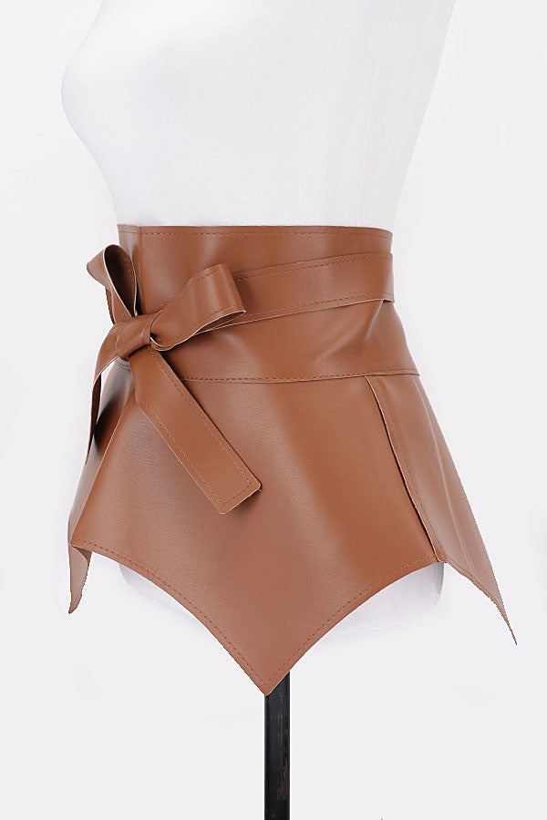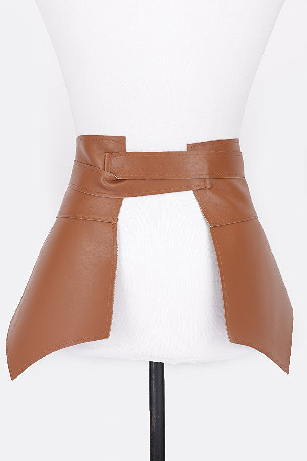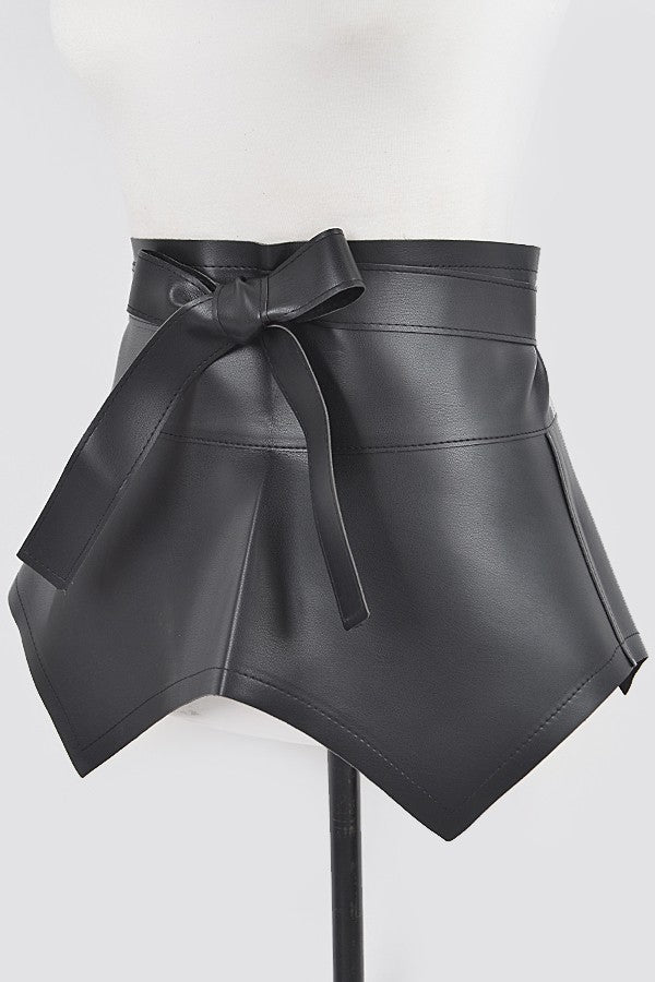 Faux leather wrap around peplum tie belt